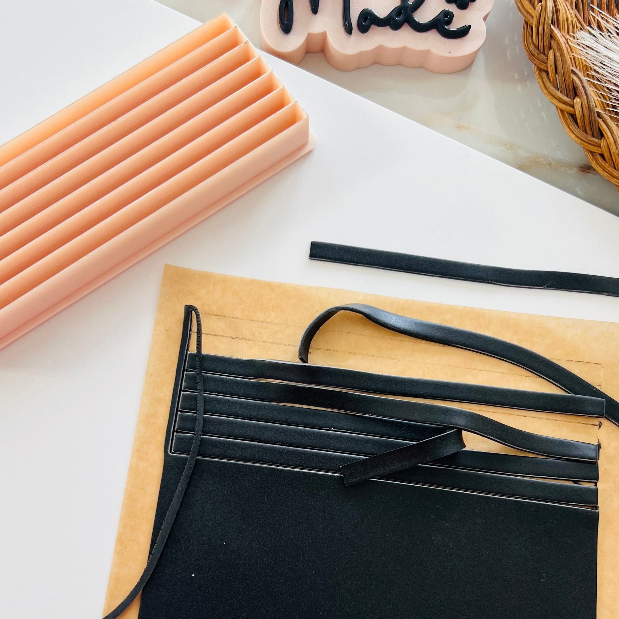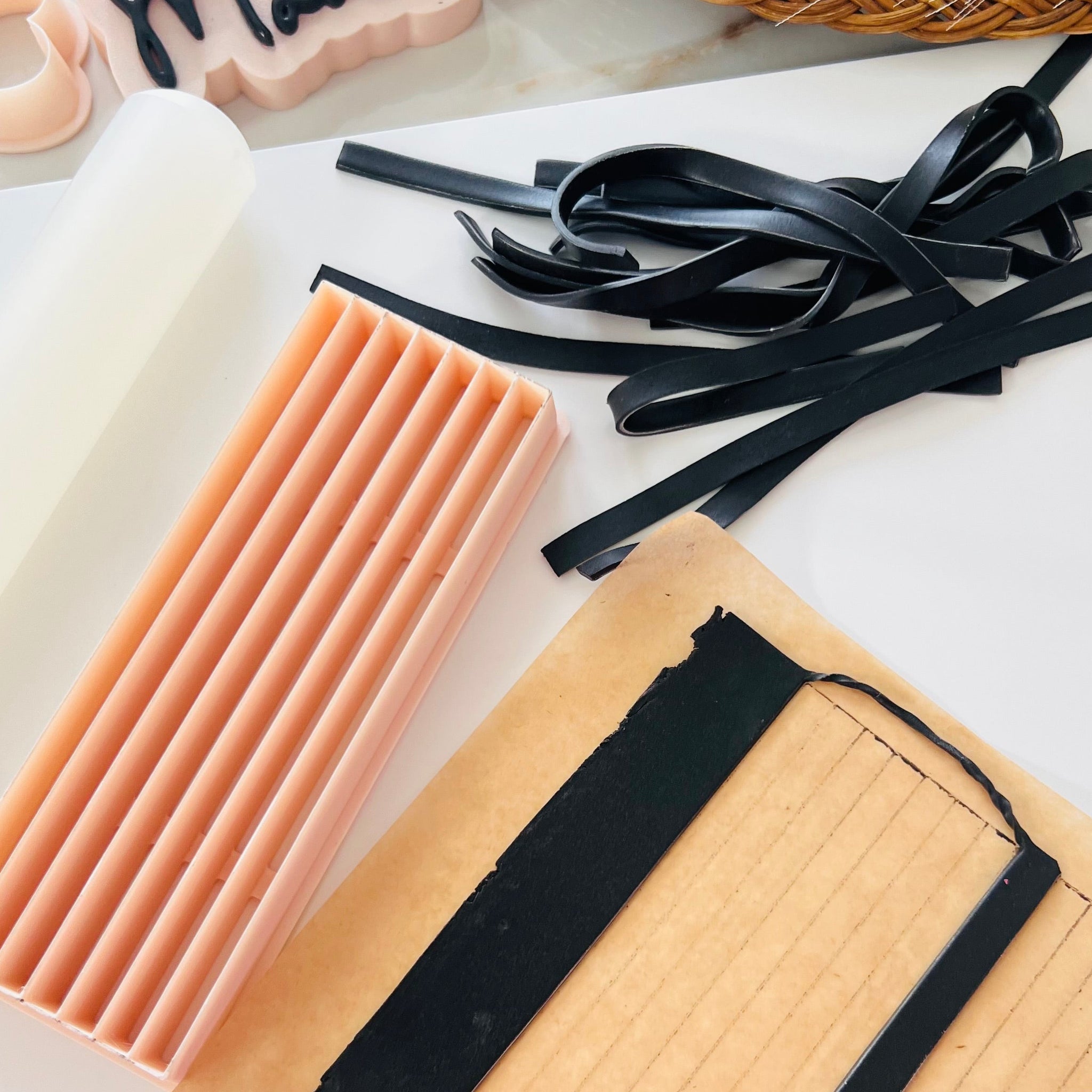 This tool is designed to cut clean, straight lines, making it ideal for striped slabs, checkerboard-style designs, and other geometric patterns for polymer clay earrings.